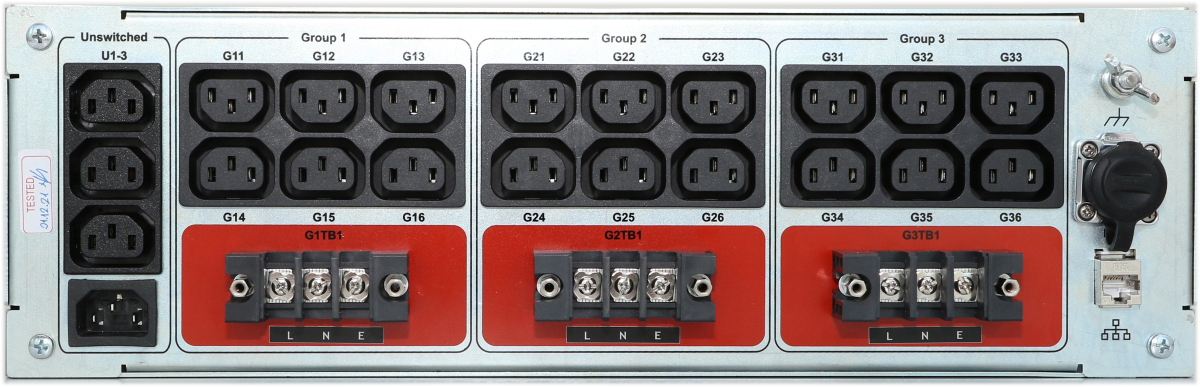 * Her bir tek faz çıkış grubu 6 adet IEC 320 C13 konnektörden oluşmaktadır. Her bir grup 20A/30A/40A (konfigürasyona göre değişir) kapasitesine sahiptir. Tek bir IEC 320 C13 konnektör maksimum 10A verebilir.